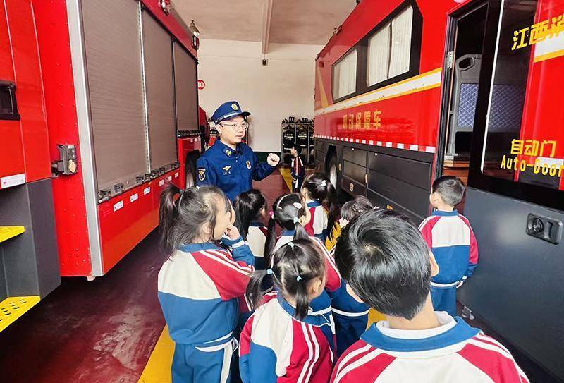 在"119"消防宣传月来临之际,南昌市朝阳新城第一幼儿园师生走进市消防救援支队特勤大队开展实践活动。