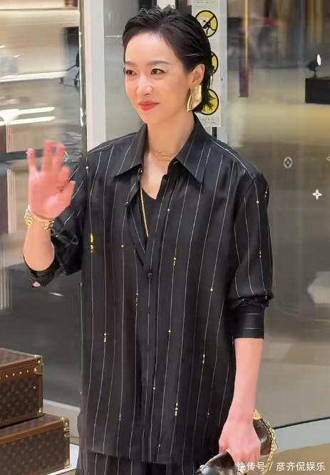 生图中巩俐的肌肤依旧紧致,虽然脸上留有岁月的痕迹,但那眼神依然锐利,气质沉稳,完全不比年轻的演员差。这套皮衣搭配小黑裙和打底裤的搭配还挺有新意的,打破了大家平时对巩俐那种优雅长裙形象的固有印象。就算只看背影,也还能看出几分少女的娇俏和灵动。