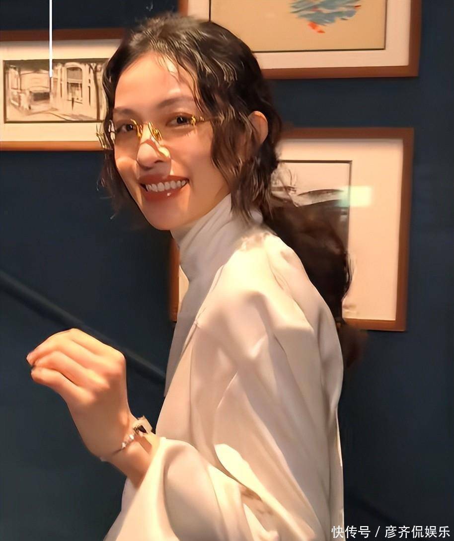 钟楚曦一出现,给人感觉很复古又高级。她穿着 LV的纯白套装,长发盘成一个发髻,就像从老电影里走出来的女主角似的。