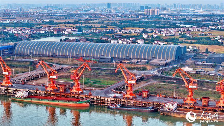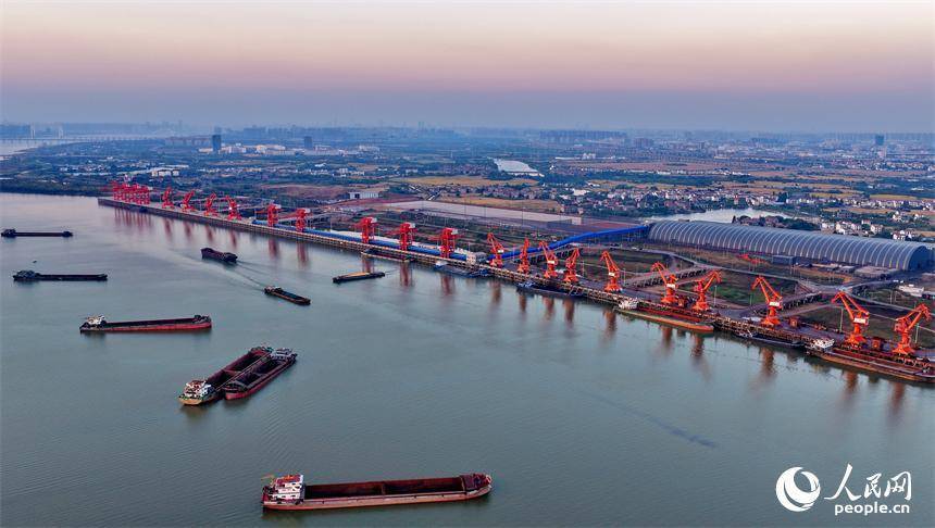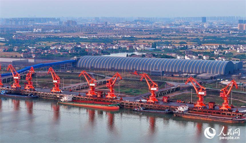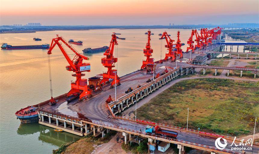 南昌市姚湾综合码头,起重机在装运电煤。人民网 朱海鹏摄