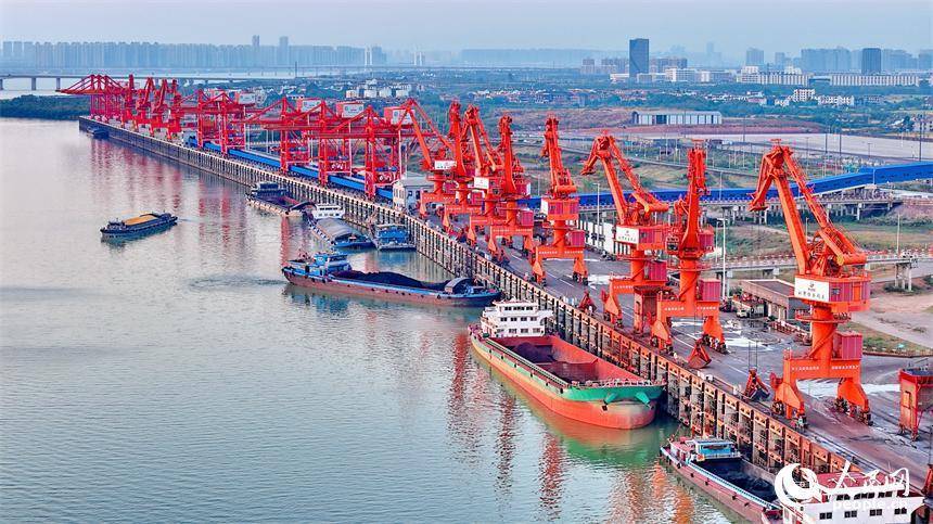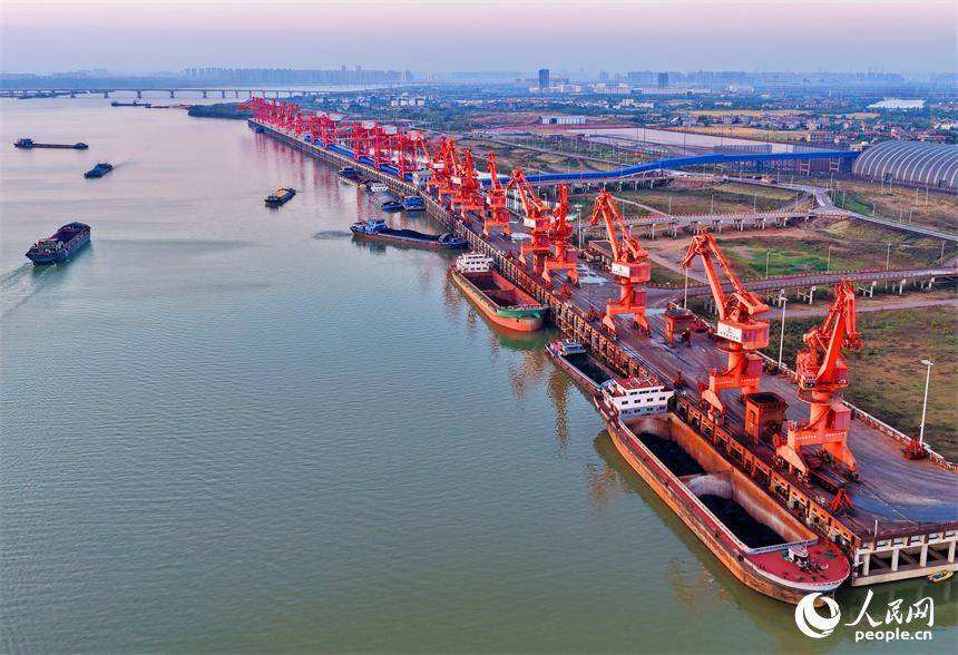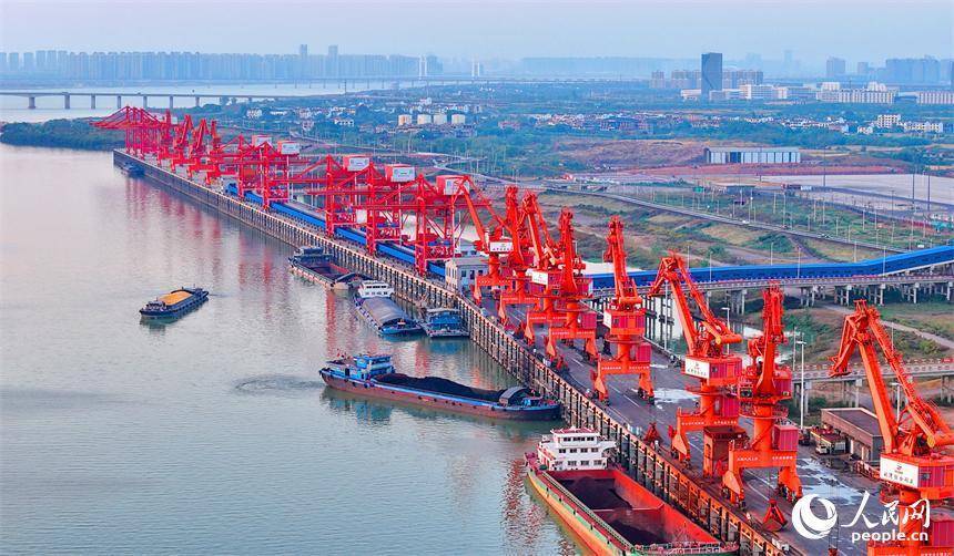 南昌市姚湾综合码头,起重机在装运电煤。人民网 朱海鹏摄人民网南昌11月7日电 (朱海鹏)近日,江西省南昌市姚湾综合码头,起重机在装运电煤。